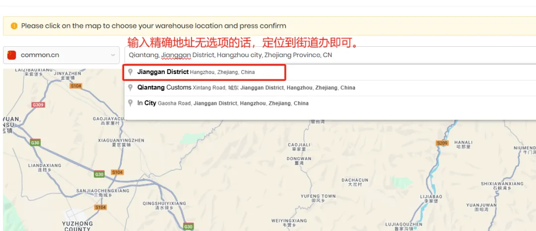 定位设置自己的发货地址,不要用平台的收货地址,否则设置失败!!!!!注意:有报错不用管,直接点confirm location即可。