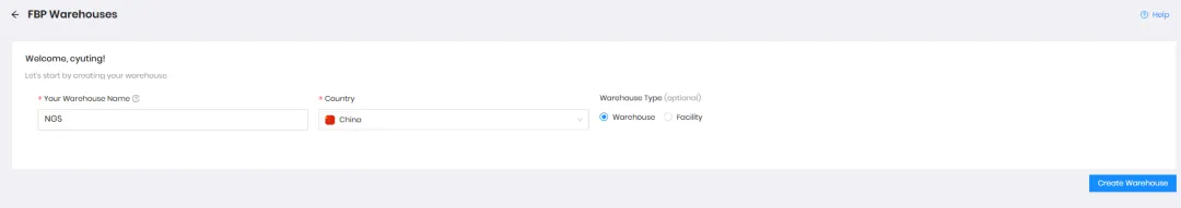 2、选择仓库类型这里可以自定义仓库名(warehouse name)