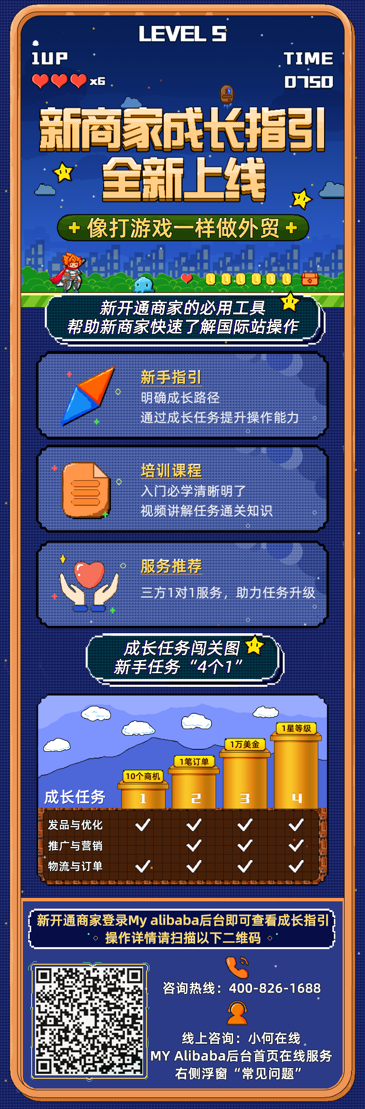 为更好地帮助各位新手商家,能快速上手国际站运营实操,阿里巴巴国际站特意为大家定制了一套独门"通关秘籍"——"商家成长指引"。