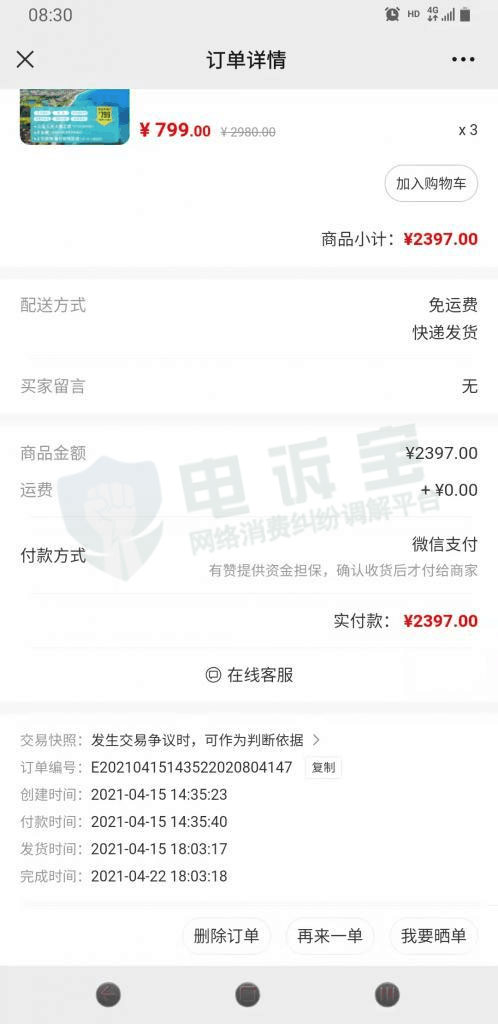 2022年3月30日,广西壮自治区的蒋先生向"电诉宝"投诉称其于2021年4月在走着瞧微信公众号购买了3张799元的海南旅游卡,共计2397元。因国内疫情反复,先确定无法安排行程,申请退订。但走着瞧客服以退订产生旅游成本要强制扣除60%的费用,只能退款40%,也就是958.8元。