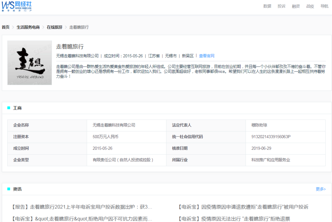 网经社企业库(COP.100EC.CN)显示,走着瞧旅行隶属于无锡走着瞧旅行社有限公司,该公司成立于2015年5月26日,法定代表人为穆陈劲琼。该公司称其旗下主打半自由行跟团游爆款,不做海量产品,去粗取精,先做精一条明星线路,再不断覆盖全球热门目的地。