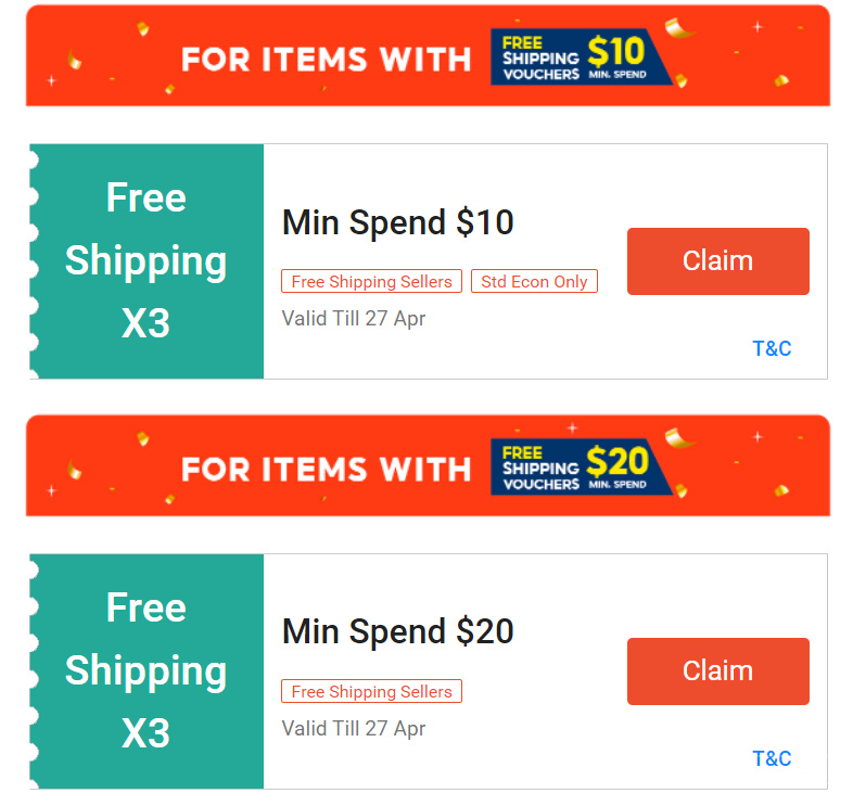 新加坡站点现已开始启用免运券。用户在参与free shipping (免运)店铺下是单,可通过领取免运券来抵消运费。为了推广免运券,平台安排了"Free Shipping Voucher"的落地页并且主打"Free Shipping Thursday"。该落地页有多个入口,包括弹窗以及App首页。买家可在每周四通过该落地页领取补贴消费门槛的优惠券。免运券可与其他平台优惠券和店铺优惠券叠加!参与返现+免运项目 (CCB+FSS)的店铺也可在该落地页获得曝光!