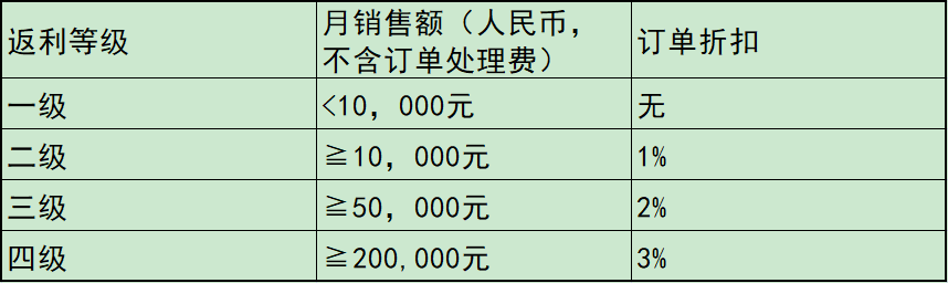 截止2022年12月底,越域网会员每月的销售额(不含订单处理费,订单按支付时间)达到以下标准,将进行返利。