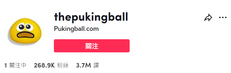 @thepukingball在TikTok发布视频仅两个月时间,便获得26.8万粉丝,370万点赞,发布的视频多个获得千万播放,百万播放。视频内容拍摄很简单,拍摄成本较低。@thepukingball在5-15号发布第一条视频,就获得了220万播放。