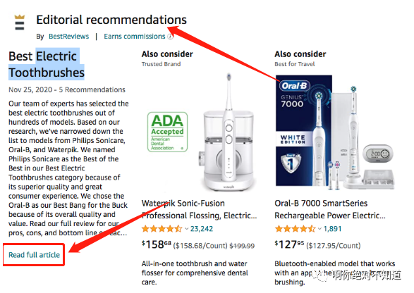 Amazon Editorial recommendations是亚马逊联盟计划(Amazon Associates affiliate program)的扩展项目。是亚马逊邀请外部内容发布者(测评网站为主)产出卖家产品推荐相关内容后根据亚马逊的算法逻辑筛选后展现在亚马逊产品搜索页面,从而帮助消费者进行购买