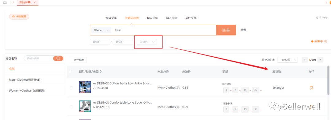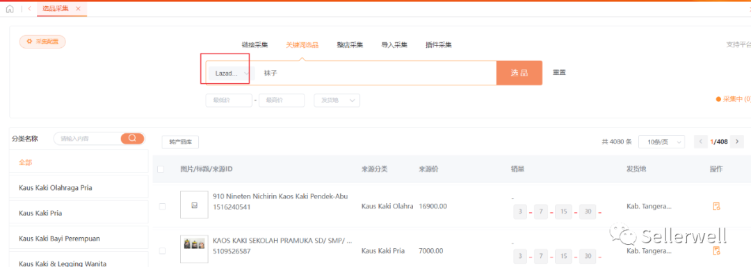 关键词采集输入Lazada、Shopee平台的商品关键词,一键采集关键词相关的商品到选品采集。