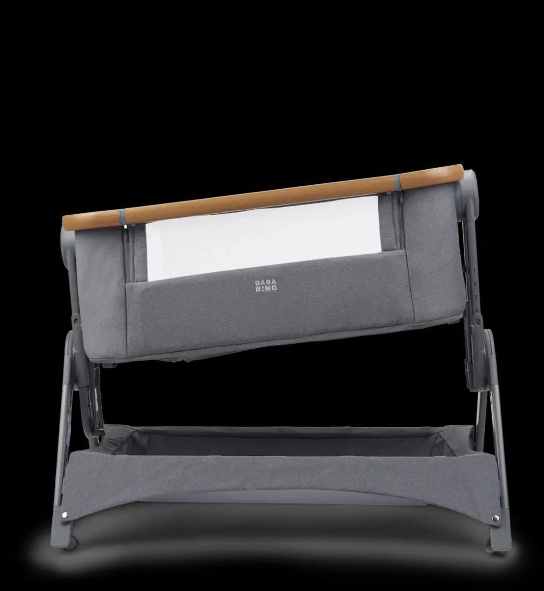 Bababing 床边和旅行婴儿床已根据最新的婴儿床标准进行了安全测试。其他核心功能包括完全可锁定的轮子、改善气流和透气性的网状侧面、现代木纹细节、高品质面料和可机洗材料。