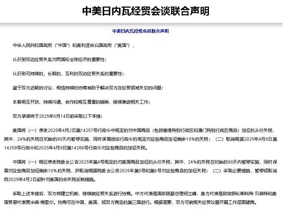 在特朗普以关税为武器向全球"发起攻势"一个多月之后,中美双方高层在全世界的关注下于瑞典日内瓦展开谈判。经过两天的谈判,最终达成的协议于北京时间5月12日15:00正式对外公布。