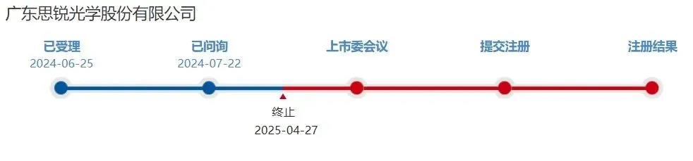 近日,广东思锐光学股份有限公司(下称思锐光学)北交所IPO终止,保荐机构为东吴证券。其于2022年挂牌新三板,2024年申请IPO获受理,一个月后便收到首轮问询,问询内容包括业绩增长的可持续性、公司产品技术先进性、竞争优势及市场空间,思锐光学直到流程终止也未给出回复。